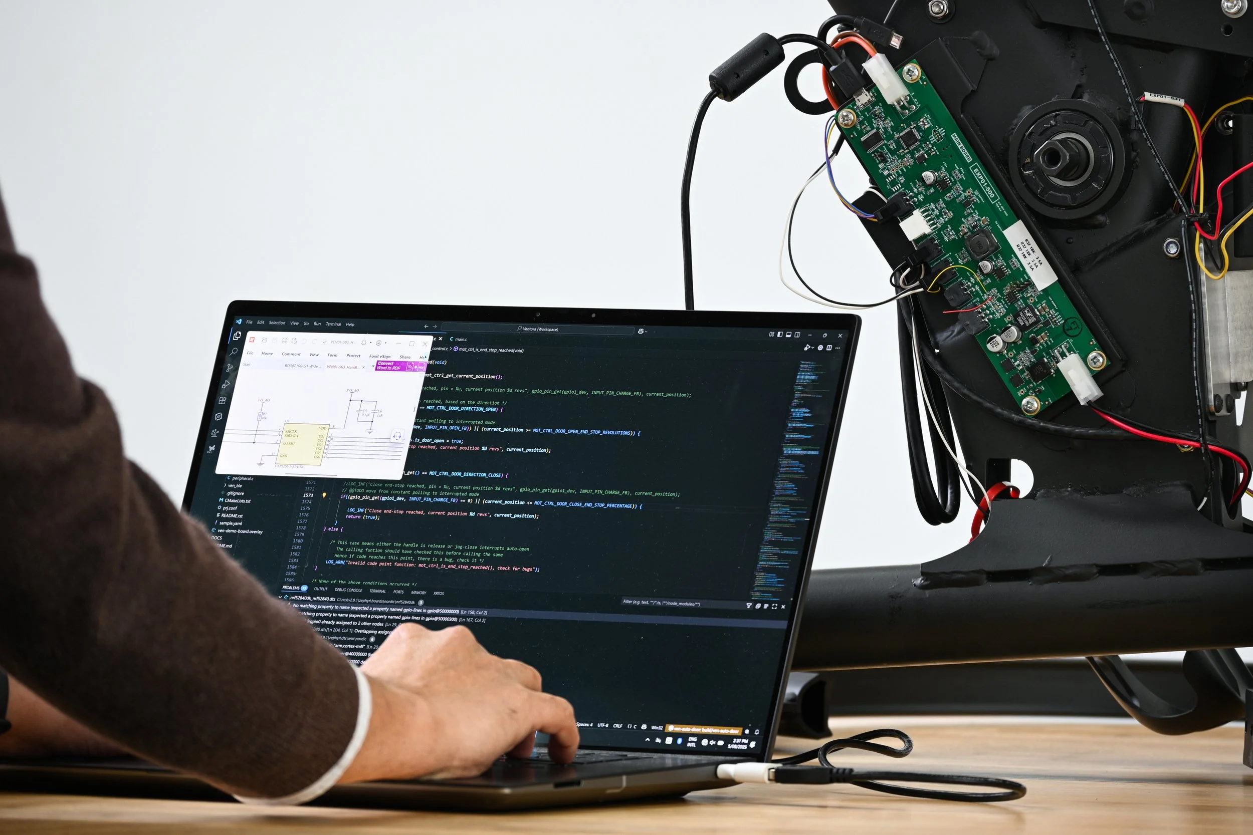 We also developed design concepts for the bike product architecture to meet the touch-controlled, dual-purpose spin and exercise mode requirement. We created an electronic system that talks to our client’s software and controls all of the electro-mechanical systems of the new bike. Our electronics design team created the firmware to interface with the software, which makes the whole system come together and operate smoothly.